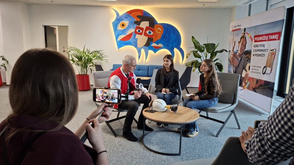 Młodzież odwiedziła siedzibę Banku Pekao S.A., który jest partnerem projektu „Przygody Przedsiębiorczego Dżeka”. Na miejscu oprócz spotkania z przedstawicielami zarządu banku i Fundacji Banku Pekao S.A., czekały na nich warsztaty dotyczące „Chindōgu – japońskiej sztuki tworzenia wynalazków”, które poprowadził Paweł Orleański, znany szerokiej publiczności z prowadzenia programu popularnonaukowego „Galileo Polska” oraz warsztaty poświęcone „Kakeibo, czyli japońskiej sztuce oszczędzania”, których zasady przybliżył ekspert banku.
