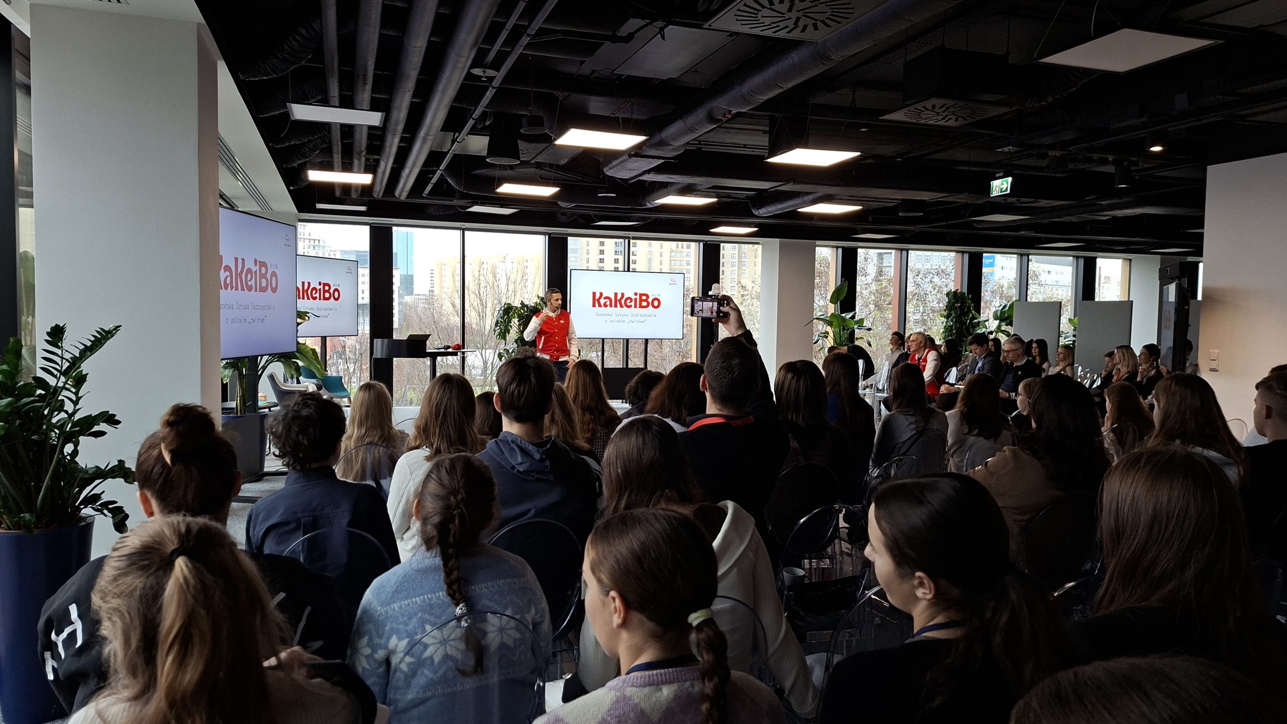 Młodzież odwiedziła siedzibę Banku Pekao S.A., który jest partnerem projektu „Przygody Przedsiębiorczego Dżeka”. Na miejscu oprócz spotkania z przedstawicielami zarządu banku i Fundacji Banku Pekao S.A., czekały na nich warsztaty dotyczące „Chindōgu – japońskiej sztuki tworzenia wynalazków”, które poprowadził Paweł Orleański, znany szerokiej publiczności z prowadzenia programu popularnonaukowego „Galileo Polska” oraz warsztaty poświęcone „Kakeibo, czyli japońskiej sztuce oszczędzania”, których zasady przybliżył ekspert banku.